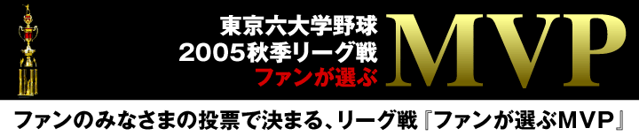 下敷領悠太 選手 (法大) に決定 この度は、多くの方々からの投票により連盟ホームページ「ファンが選ぶMVP」にて、MVPを獲得することが出来ました。 ありがとうございました。 この結果に恥じないような投球を明治神宮野球大会でお見せ出来ればと思っていますので、今後もご声援、宜しくお願い致します。 下敷領悠太